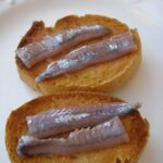 3. Mettre 1 anchois égoutté et coupé en deux sur chaque toast et servir.
