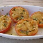 4 grosses tomates, 2 gousses d’ail, 1 c. à soupe de persil haché, 3 c. à soupe de chapelure, 3 c. à soupe d’huile d’olive