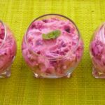 5 à 6 grosses betteraves cuites, 250 g de yaourt grec ou fromage blanc, 250 g de mayonnaise, 250 g de noix hachée, 1 à 2 gousses d’ail, sel, poivre, 1 c à s de vinaigre de vin rouge, 1 filet d’huile d’olive