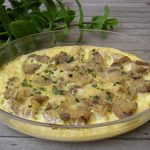 3. Couper le filet de cabillaud en morceaux de la taille d’une bouchée. Les ranger dans un plat allant au four beurré. Couvrir par la préparation aux champignons. Verser la crème aux œufs dessus. Parsemer de la chapelure et le beurre restant coupé en petits morceaux.