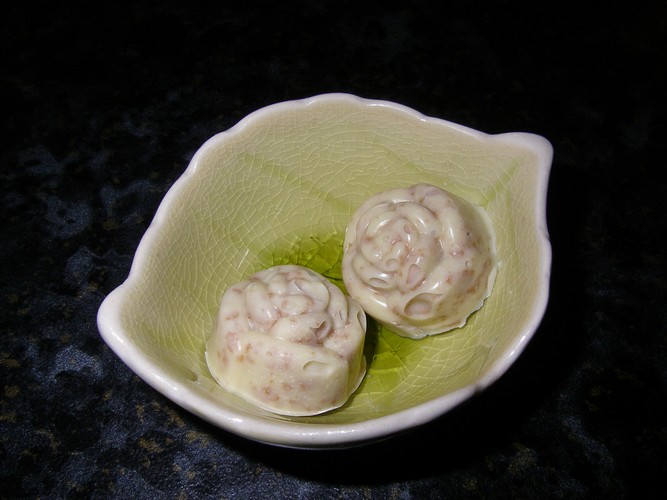 * Variation 2 : 100 g de chocolat blanc et 2 biscuits roses émiettés.