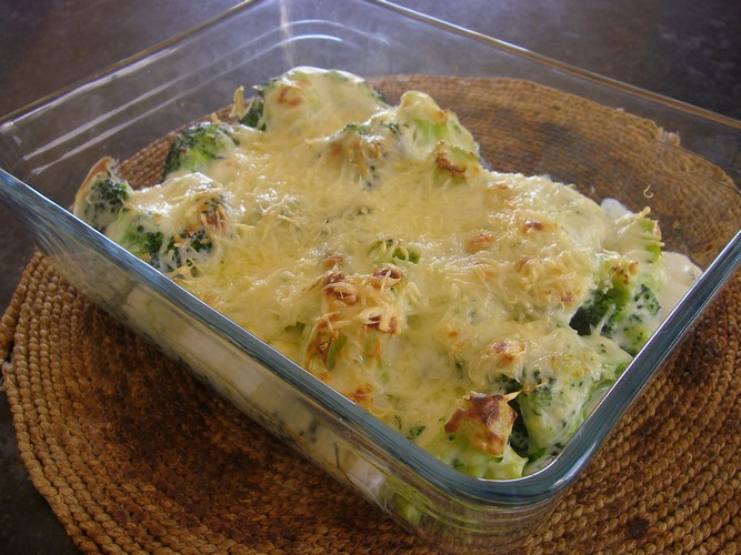 * Gratin de brocoli : Remplacer le cœurs de palmiers par 1 brocoli. Séparer le brocoli en petits bouquets. Le faire blanchir dans de l’eau bouillante salée pendant 3 minutes. Les égoutter et suivre la même procédure que le gratin de cœurs de palmiers.