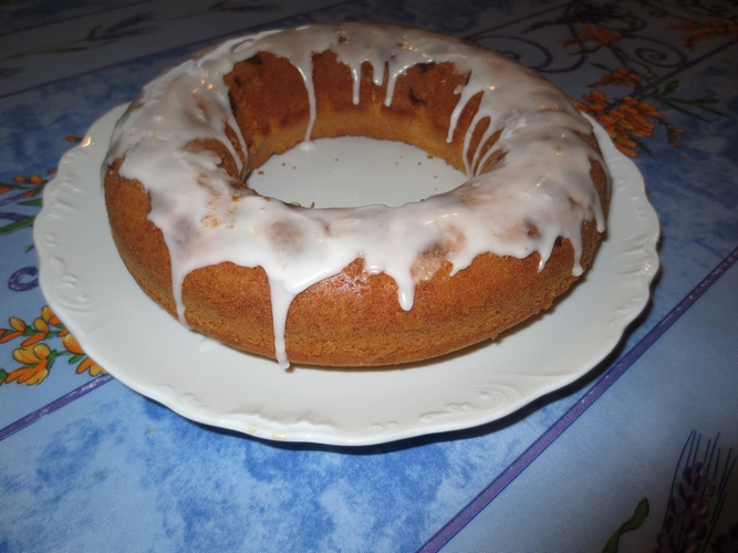 5. Dans un bol, mélanger le sucre glace et le jus de citron. Le étaler sur le gâteau. Servir à température ambiante.