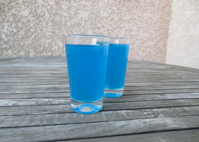5 cl de vodka, 4 cl de curaçao bleu, 3 cl de jus de citron, quelques glaçons