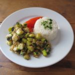 3. Faire chauffer l’huile d’olive dans une poêle. Y faire sauter les courgettes et l’oignon environ 15 minutes.