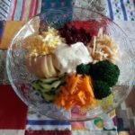 - Sur le sarrasin (dans les bols), placer la betterave, les carottes, les œufs, la pomme, le brocoli, le concombre, les pommes de terre et la sauce. Servir frais.
