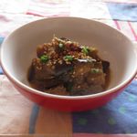 - Verser le mélange au miso dans la sauteuse. Ajouter l’oignon vert et le poivre de Sichuan. Remuer. Faire cuire à feu moyen, en remuant de temps en temps, jusqu’à ce que les aubergines soient fondante et que la sauce soit bien réduit.