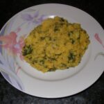 500 g de lentilles corail, 200 g de feuilles de blettes, 200 g de pommes de terre, 10 cl d’huile d’olive, 5 gousses d’ail, 2 citrons, 1 bouquet de coriandre ciselée, 2 oignons, 2 pincées de sel, 2 pincées de poivre blanc moulu